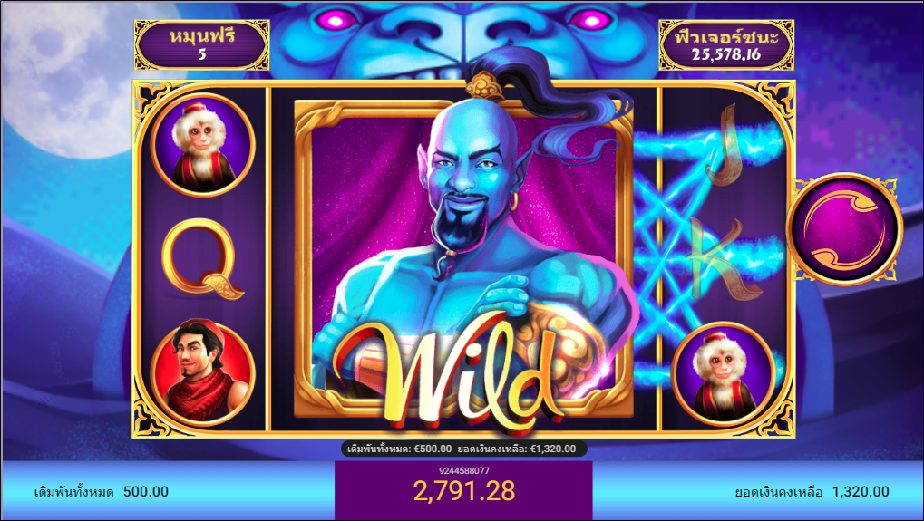 สัญลักษณ์ Wild จะสามมารถแทนสัญลักษณ์ได้ทุกอย่างยกเว้น สัญลักษณ์ Scatter และ สัญลักษณ์พรมวิเศษ โจะปรากฏที่วงล้อ 2,3,4 และ5 เท่านั้น