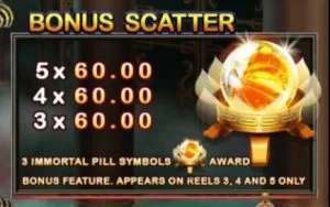 - Bonus เป็นลูกแก้วเพลิง ซึ่งจะมาพร้อมยอดเงิน ที่ถ้าลงมาครบ 6 ตัว รอลุ้นรางวัลใหญ่ได้เลย